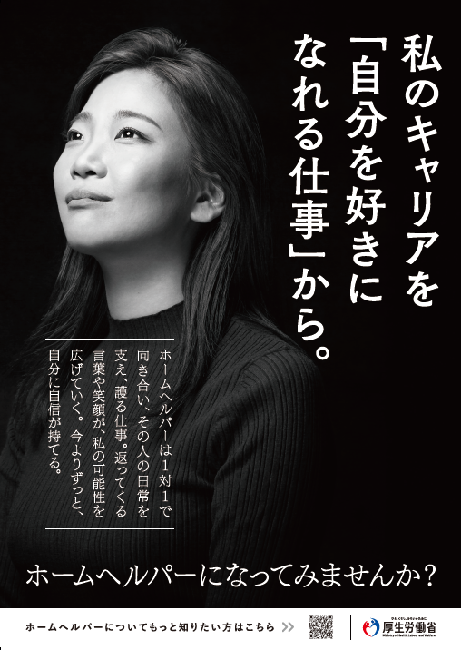 厚生労働省では、ホームヘルパーの仕事の内容や魅力を、これから就職される方や転職を考えている方などに広く周知するため、「ホームヘルパーの魅力発信のための広報事業」を行っております。