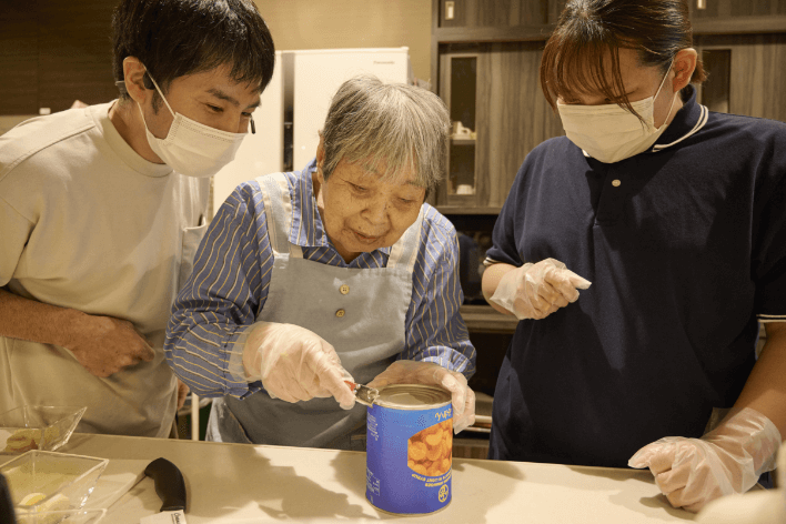 ─午後のおやつの時間には入居者さんたちと楽しそうに話されていましたね。