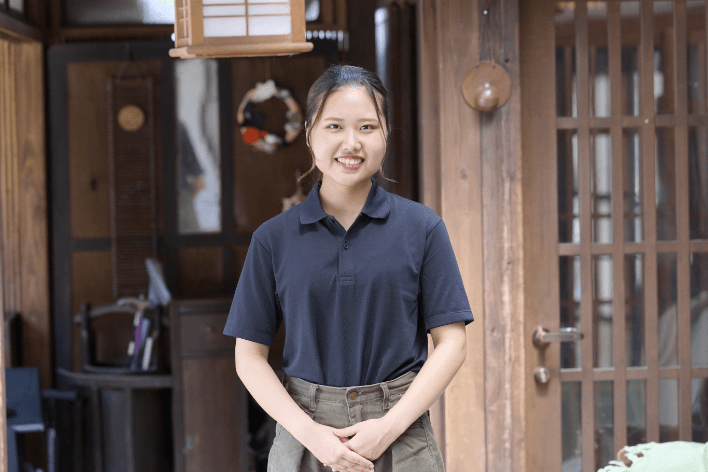 「人の役に立ちたい」という思いがあり、現在は大学で臨床検査技師になるための勉強をしています。医療に携わる上で、母の職場以外にも介護の現場を見ておい た方が良いと思い情報を集めていました。たまたま就業体験募集のページを見つけて、そこから「宅老所よりあい」のウェブサイトにたどり着き、楽しそうな雰囲気の写真を見て、体験してみたくなりました。