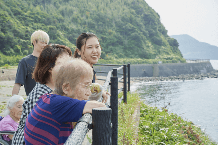 車を停めて、外へ出て利用者さんたちと散歩をしながら海を眺めていたんですけど、私が「暑いですねー」と声を掛けると、おばあちゃんが笑顔で「そうね」「海がきれいだね」などと答えてくださったのがうれしかったです。海を見ているおばあちゃんたちの表情がどんどん明るくなっていくのがわかり、私自身も「来て良かった」と充実感を味わえました。